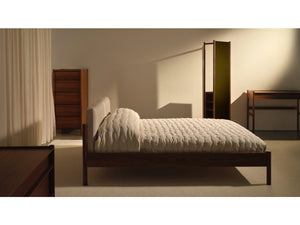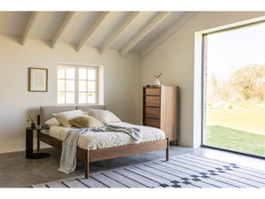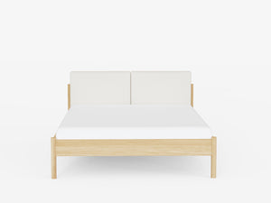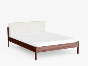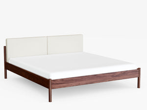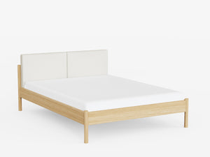 Made from oak, walnut, or a sleek black-stained wood, its minimalist frame is inspired by Nordic design - simple, stylish, and effortlessly cool. Like the rest of the Pala collection, it features gently rounded legs for a refined touch. The upholstered headboard adds a cozy, soft contrast that makes the whole piece feel warm and welcoming.
