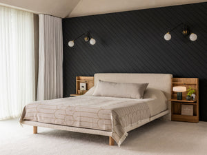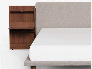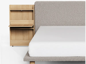 • Materials: Upholstered Boucle headboard in Birch or Elephant Grey colour. Solid oak or walnut feet. Timber Structural Frame. Assembly required