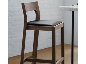• Materials: Solid oak or walnut frame finished with a Clear polyurethane lacquer, Top grain leather upholstered seat pad, Stainless steel foot rest. Oak the leather is Brown, Walnut the leather is Black
