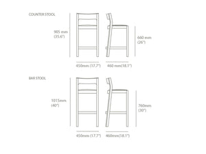 • Dimensions: Counter Height - 90.5cm High (Seat Height - 66cm) x 45cm Wide x 46cm Deep / Bar Height - 101.5cm High (Seat Height - 76cm) x 45cm Wide x 46cm Deep