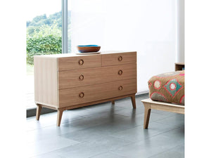 This Valentine chest of drawers by Matthew Hilton features the signature tapered leg detail of the contemporary Valentine range, which lends a visual balance to the piece. Raised up from the ground, the chest creates a feeling of space by keeping sight lines around the room clear.