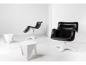 Created from an uncompromising pursuit of comfort, the chair embodies a seamless union of function, ergonomics, and organic form. Kukkapuro devoted several years to perfecting Karuselli’s dimensions, famously sculpting the chair around his own body. By wrapping himself in chicken wire and creating a plaster cast in a relaxed lounging posture, he achieved a shape that responds precisely to the human form. Introduced in 1964, the chair’s iconic silhouette quickly gained international recognition.
