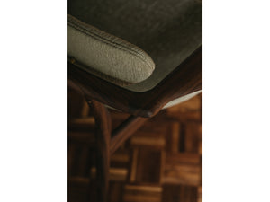 • Material: Walnut or Oak frame in a dark or clear oil finish, brass detailing, upholstered in various fabrics or leathers. click to see all the available options.