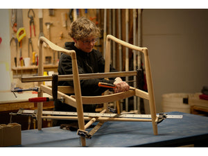 • Material: Ash, Walnut or Oak frame in a dark or clear oil finish upholstered in various fabrics or leathers. click to see all the available options.