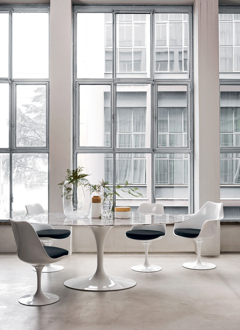 Their iconic designs include the Knoll Barcelona Chair , Saarinen Tulip Table, Saarinen Conference Chair, Saarinen Tulip Side tables to name just a few.