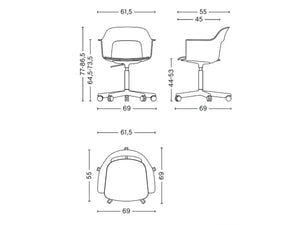 • Dimensions: Height: 77 to 86.5cm x Width: 61.5cm x Depth: 55cm (Seat Height: 44 to 53cm)