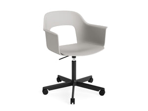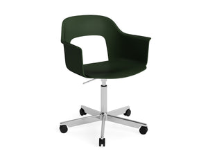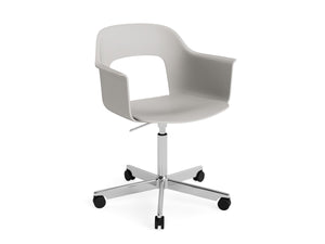 • Material: Shell - Made from at least 96% post-consumer recycled polypropylene. 5-star swivel base in cast aluminium with gas lift and soft wheels suitable for all floors