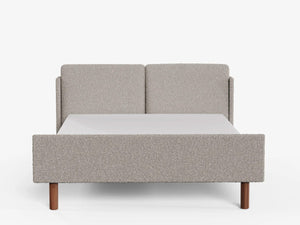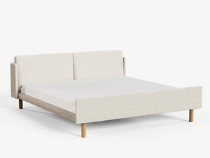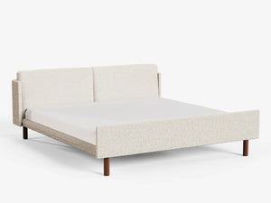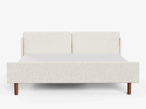 • Materials: Upholstered Boucle headboard and frame. Solid oak or walnut legs. Timber Structural Frame. Assembly required