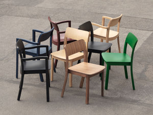 • Material: Seat and back in moulded plywood. Top veneer in water-based lacquered oak, ash or walnut