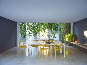 Kartell Masters Dining chair is a powerful tribute to the three chair symbol, re-read and re-interpreted by the creative genius of Philippe Starck.