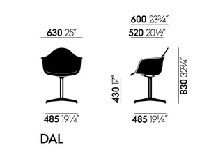 Eames DAL Chair (DAL = Dining Height Armchair La Fonda Base) was produced in collaboration with Zenith Plastics for the Museum of Modern Art in New York's Low-Cost Furniture Design Competition and was the first industrially manufactured plastic chair.