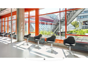 • Material: Seat shell made from recycled post-consumer plastic (Note: due to the composition of the recycled material, the seat shell colours exhibit very subtle specks of pigment), metal legs Chrome, Black or White Powder-Coated. Upholstery in Hopsak fabric (100% polyamide).