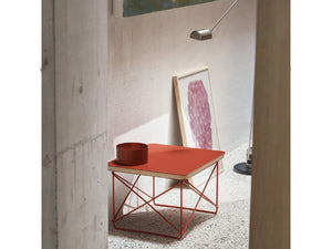 Charles and Ray Eames designed the LTR table as a small, variable side table for their Eames house. Even today there are many of these tables there individually or in groups decorated with objects from the Eames collection or simply acting as side table next to armchairs and sofas.