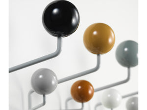 Used instead of simple hooks, these brightly-coloured wooden spheres were aimed at encouraging children to hang up "all their things".